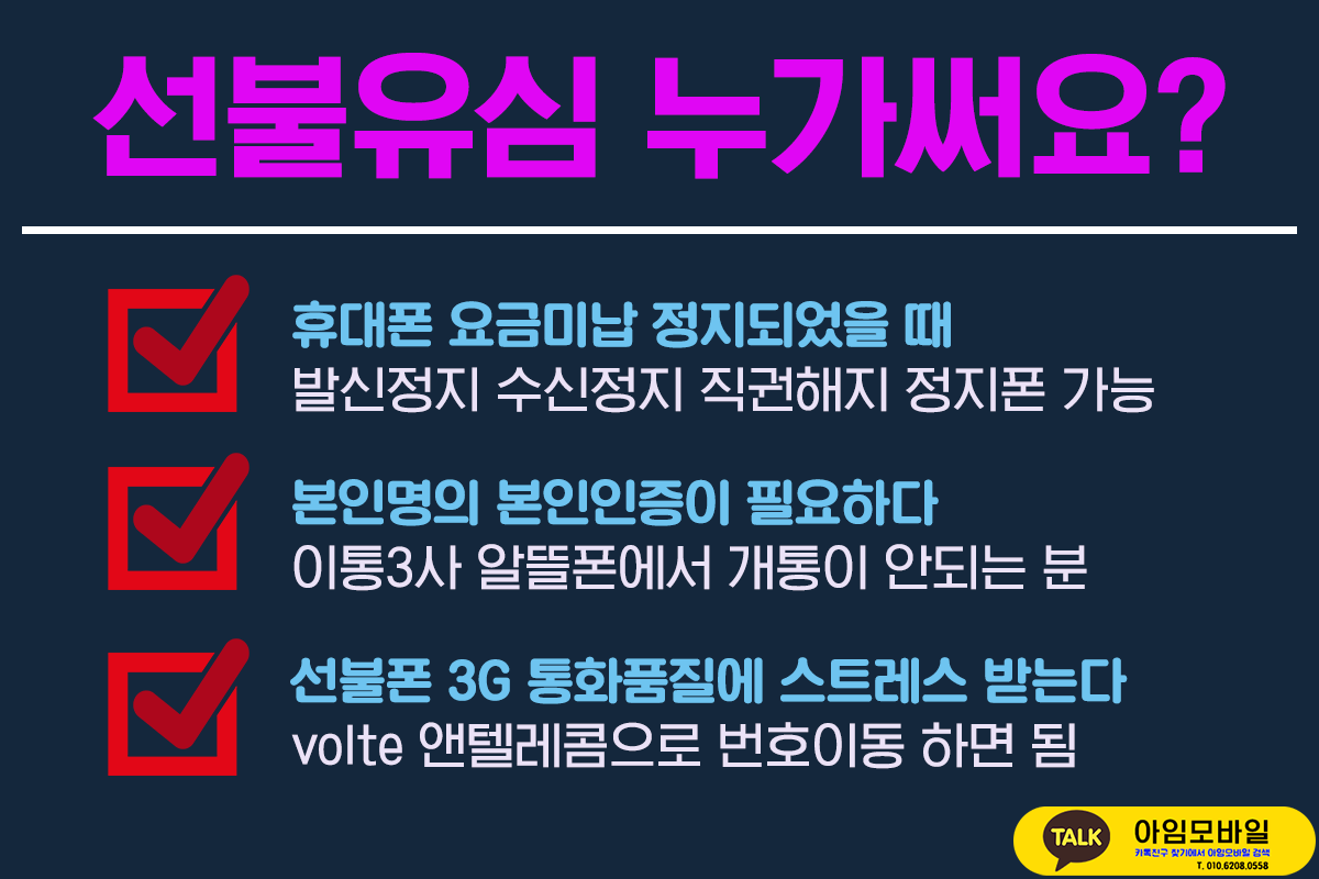 아임모바일로 연락해서 개통 신청을 했다고 말씀해주세요. 카톡에 이름만 남겨주시면 됩니다.