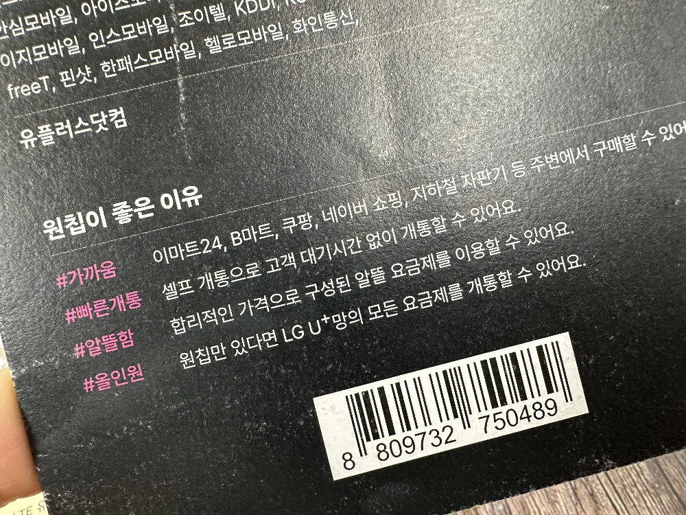 유플러스 원칩 이마트24 유심칩 개통 절차