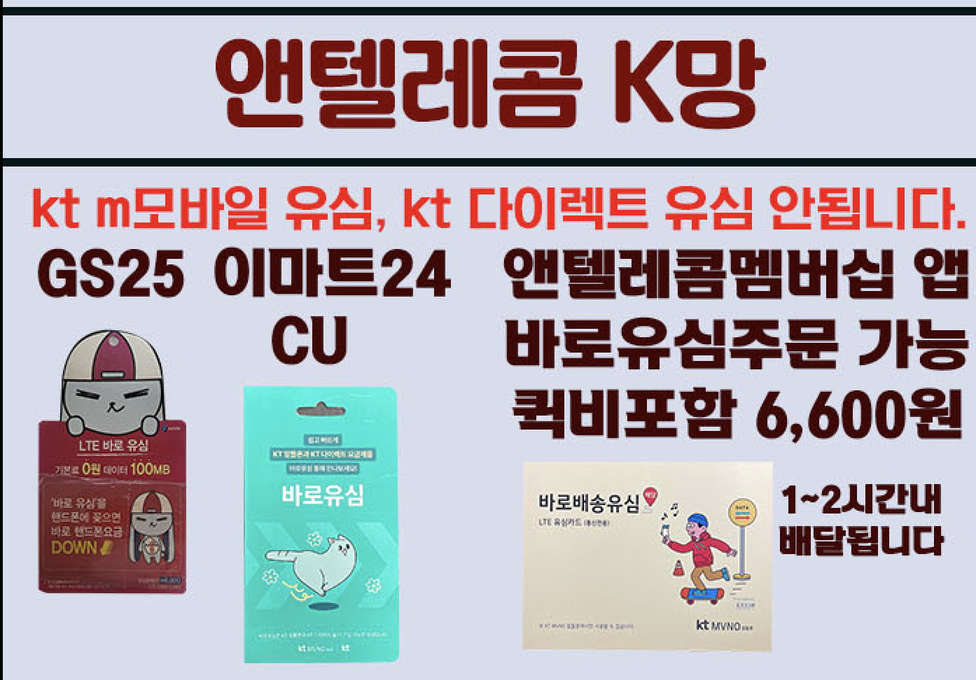 < 유심 입력 방법만 다를 뿐, K망이나 L망이나 순서는 동일하며, K망 이미지로 설명드릴게요. >